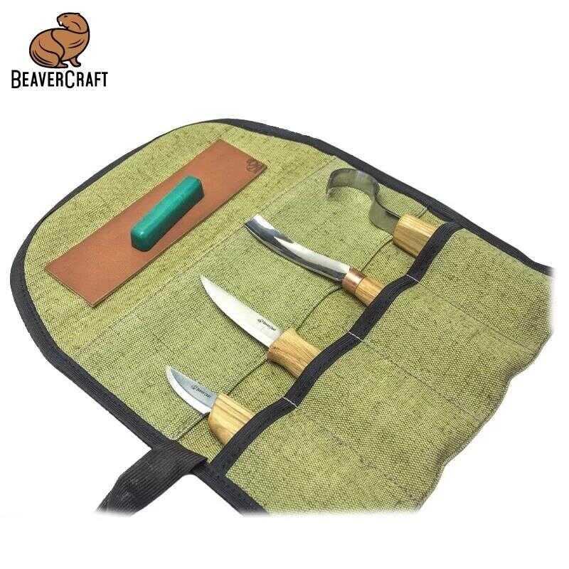 ● Set içeriği SK2, C4 ve C3 oyma bıçakları, K6L/15 ıskarpela, deri bileme kayışı, yeşil parlatma macunu, kanvas alet taşıma rulosu