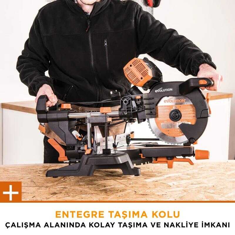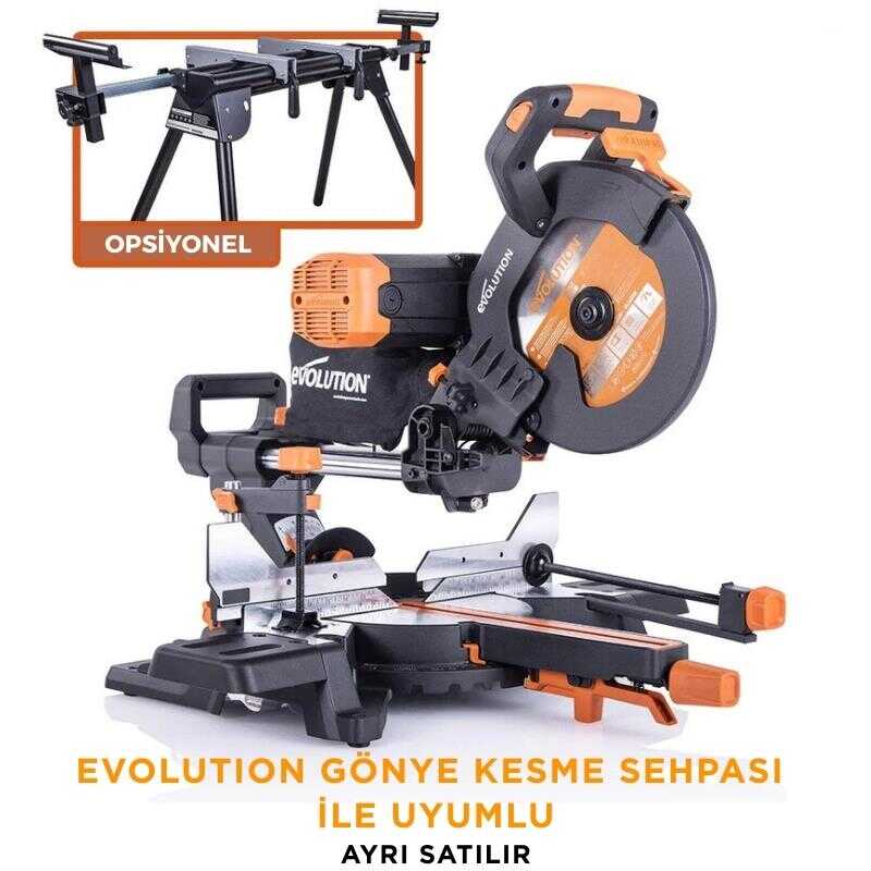 Evolution 053-0003B R255SMS-DB+ Çift Eğimli Kızaklı Bileşik Gönye Kesme Makinesi, 255mm
