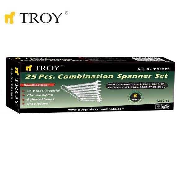 TROY 21525 Kombine Anahtar Takımı - 25 Parça (6-32mm)